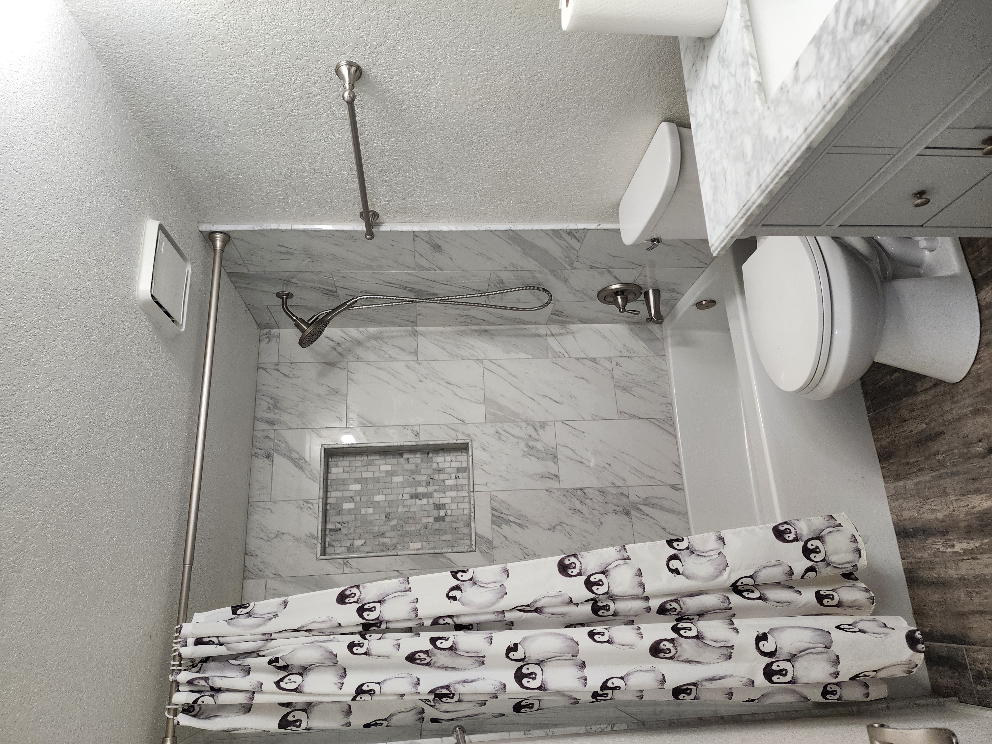 2ND BATHROOM WITH NEW (2024) MODERN MARBLE TILE AND FIXTURES. |