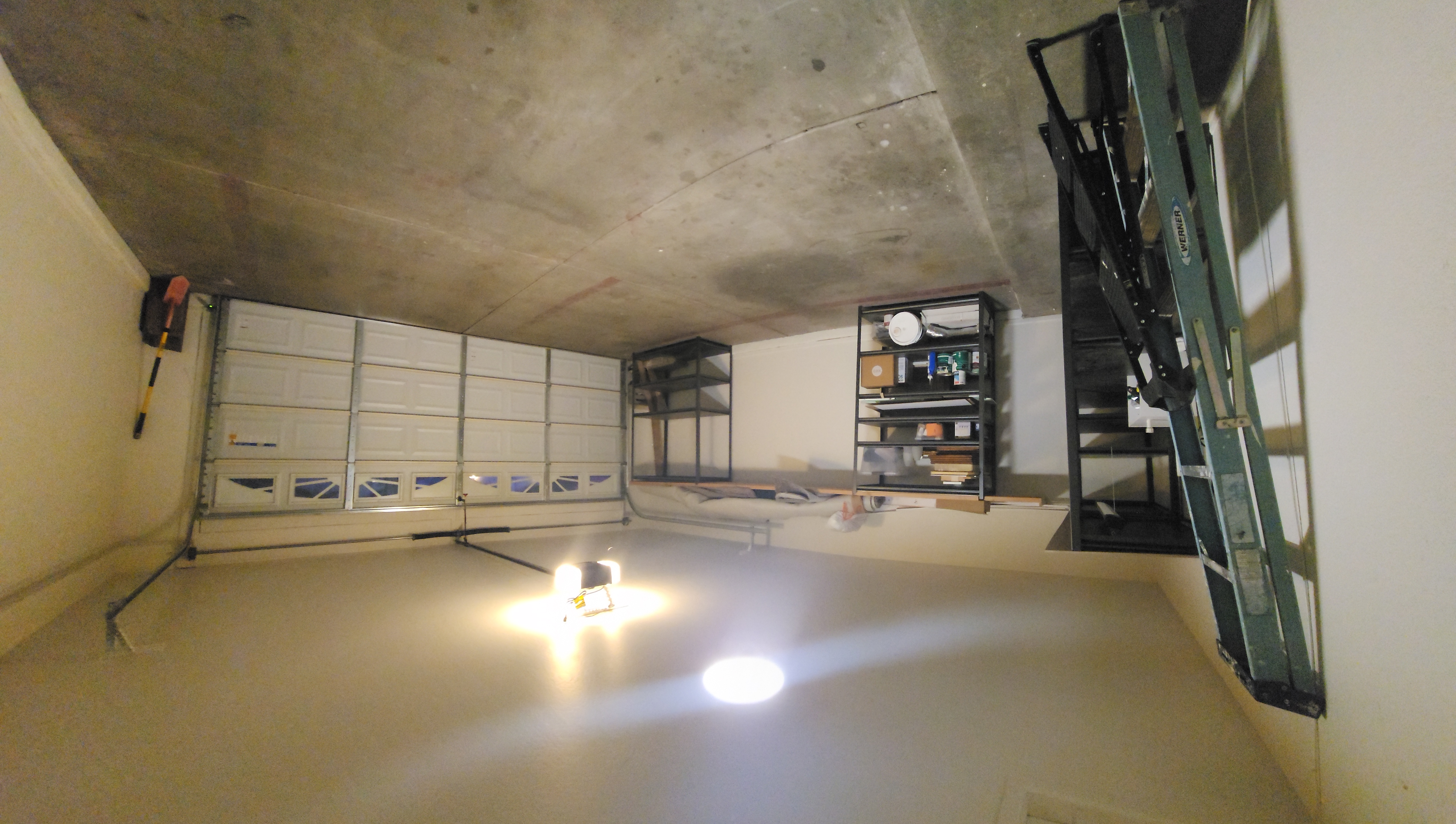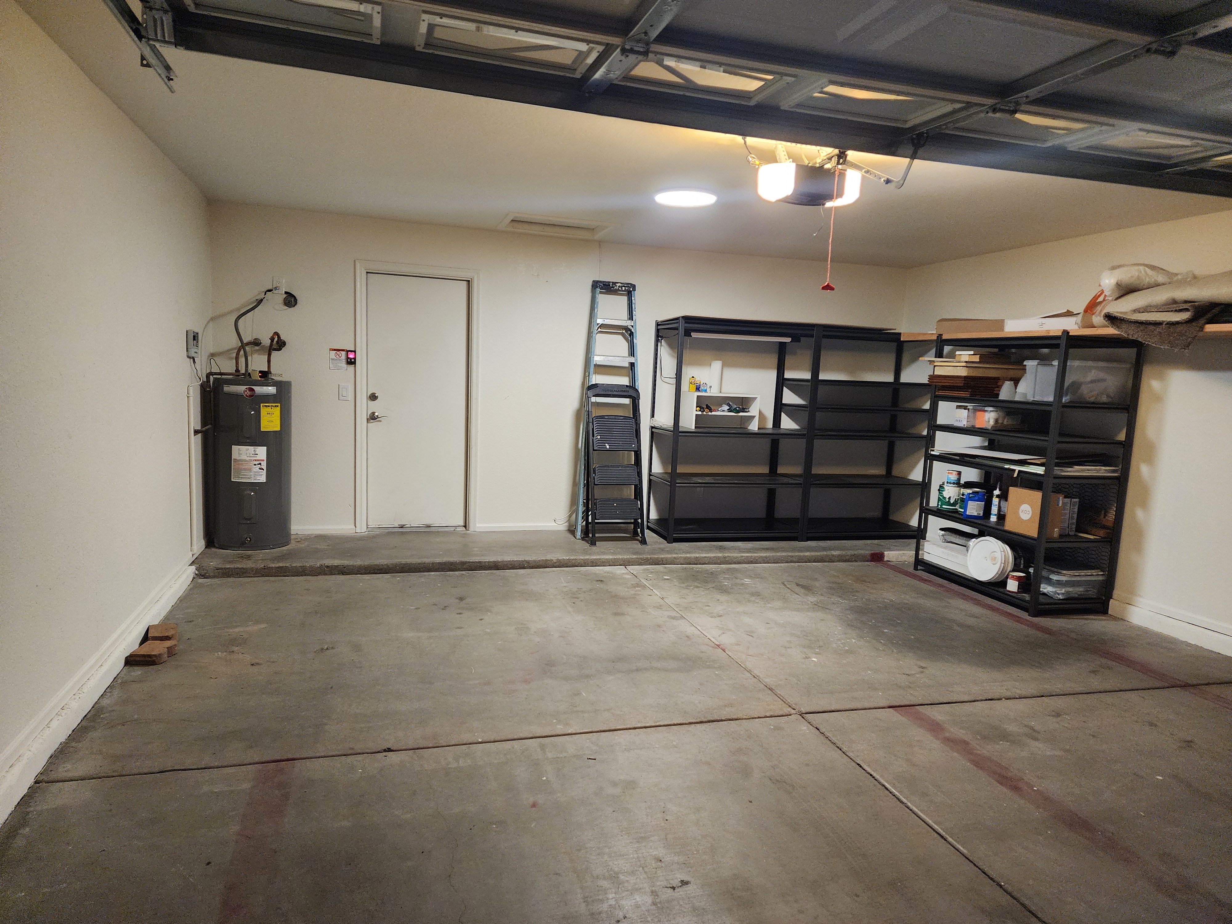 2 CAR GARAGE WITH CONVENIENT SHELVING |