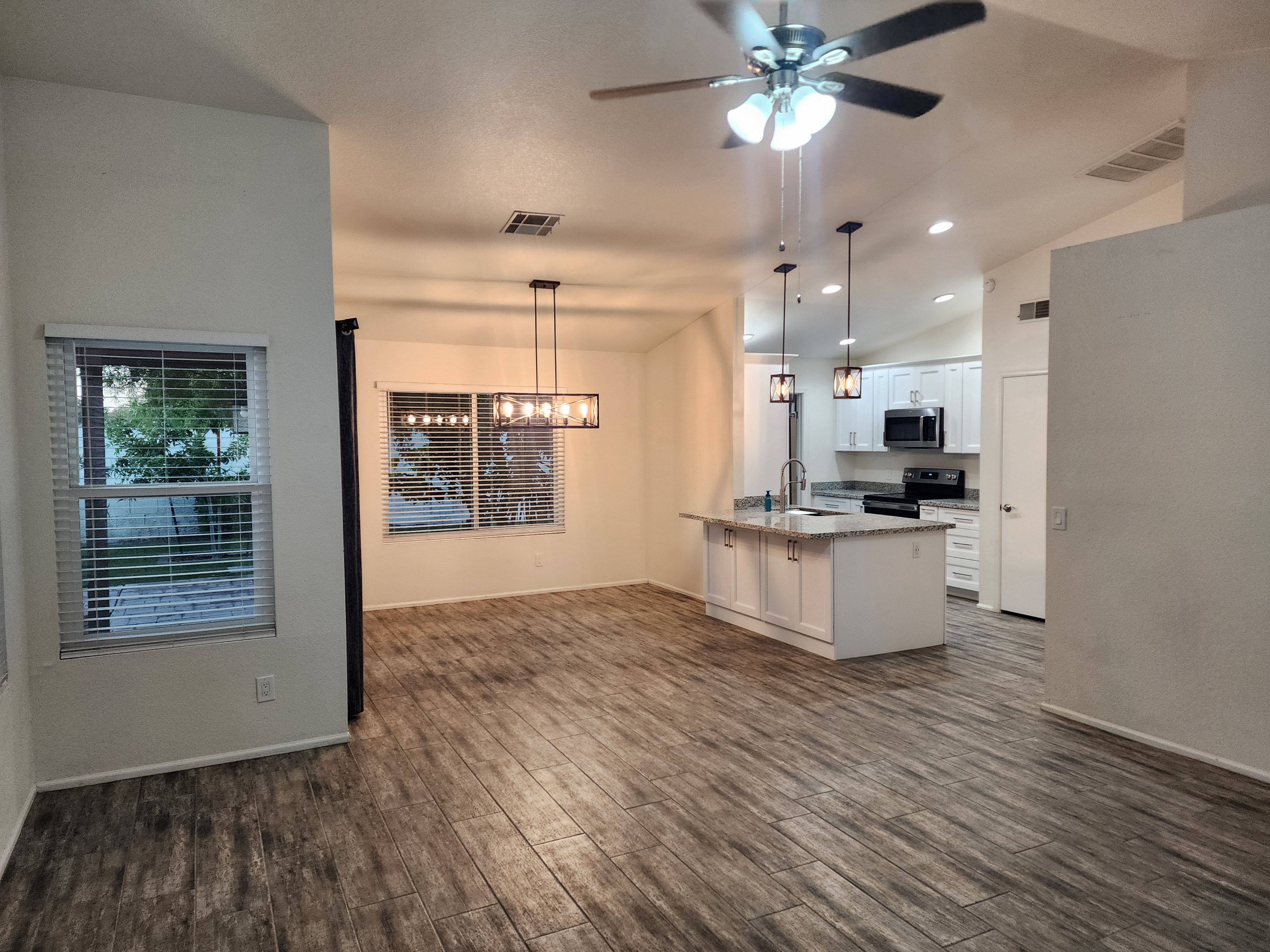 GREATROOM WITH NEW (2024) WOOD PLANK TILE THROUGHOUT AND NEW (2024) WINDOWS HOUSEWIDE |